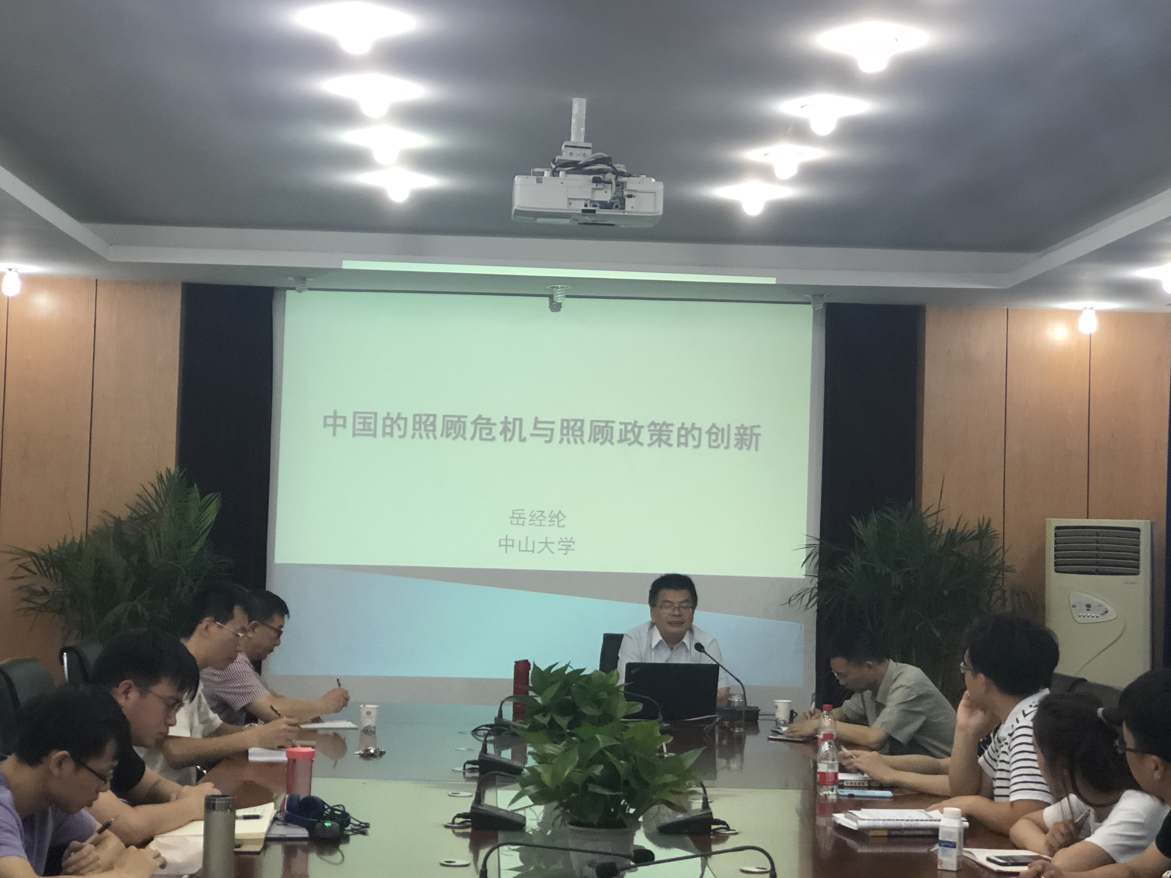 中山大学岳经纶教授来武汉大学社会保障研究中心讲授“中国的照顾危机与照顾政策的创新”