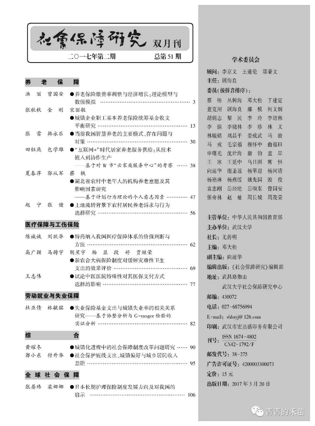 《社会保障研究》2017年第2期目录